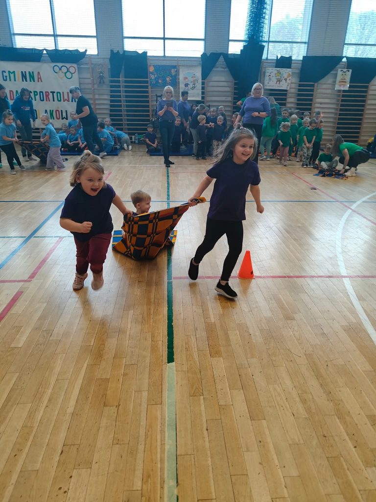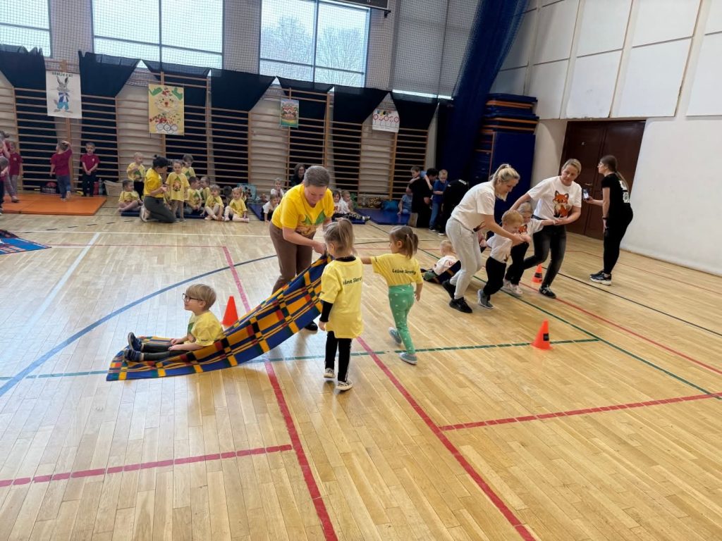 27 lutego 2026 r. w karlińskiej Homanit Arenie odbyła się Gminna Olimpiada Sportowa Przedszkolaków.Organizatorami wydarzenia byli Przedszkole Miejskie im. Kubusia Puchatka oraz Regionalne Centrum Turystyki i Sportu. Celem spotkania była integracja grup przedszkolnych z terenu całej gminy, zachęcanie dzieci do aktywności ruchowej oraz wzbogacanie ich przeżyć poprzez radosne i szlachetne współzawodnictwo.Olimpiadę zainaugurowało uroczyste odśpiewanie hymnu, a następnie rozgrzewkę dla wszystkich uczestników poprowadziła Pani Malwina Sadowska z Akademii Mluksiaków, wprowadzając dzieci w sportowy nastrój i przygotowując je do dalszych zmagań.Po rozgrzewce przedszkolaki z entuzjazmem przystąpiły do zimowych konkurencji sportowych. Dzieci toczyły śnieżne kule, jeździły sankami, grały w hokeja, rzucały śnieżkami oraz próbowały swoich sił na łyżwach. Nie zabrakło również emocji wśród dorosłych – jury otrzymało specjalne zadanie i wzięło udział w wyścigu lodowych kręgów.Po intensywnych konkurencjach dzieci miały także okazję wyciszyć organizm i zrelaksować się dzięki Pani Katarzynie Wojciechowskiej – instruktorce jogi dla dzieci, która poprowadziła spokojne ćwiczenia oddechowe oraz elementy relaksacji.Na zakończenie wszyscy uczestnicy zostali nagrodzeni zdrowym poczęstunkiem, a uśmiechy i radość dzieci były najlepszym dowodem na to, jak potrzebne i wartościowe są takie inicjatywy.